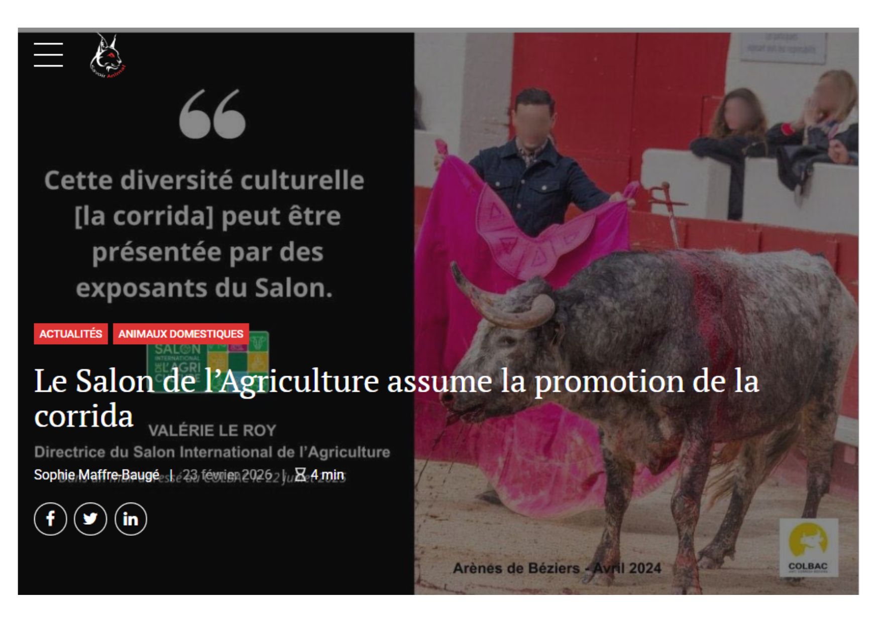 Le Salon de l’Agriculture assume la promotion de la corrida